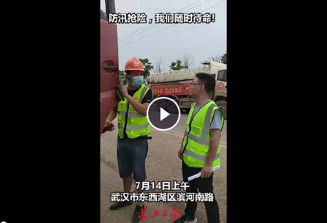 武漢建工集團防汛搶險第一分隊的260多位隊員與數十臺搶險車輛及機械設備,在武漢市東西湖區(qū)濱河南路集結待命。